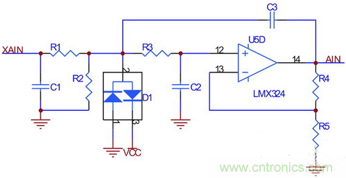 根據前面部分介紹的輪速傳感器信號特點,設計接口電路如圖3所示。