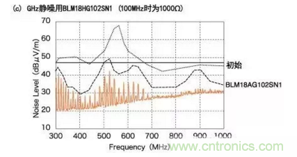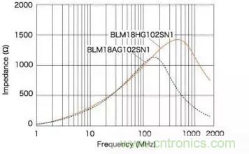 傳統型BLM18AG對300MHz和700MHz之間頻率范圍內的噪聲抑制十分有效。
