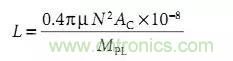 式中:N = 圈數(shù), Ac = 截面積, 分母 Mpl = 磁路長度。