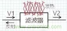 插入濾波后,會(huì)有什么結(jié)果?V2 一定小于 V20,也就是說插入濾波器后輸出變小了,為何輸出變小?一部分變成熱量、一部分被濾波器擋住返回了,如圖: