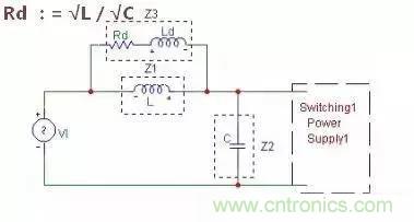 如圖:在電感上并聯(lián)一個(gè)電阻與電感串聯(lián)的電路,這稱為串聯(lián)阻尼法,效果與并聯(lián)阻尼相同,不足之處是由于在原電感上并聯(lián)電阻電感后對(duì)高頻干擾信號(hào)的衰減差一點(diǎn),這是顯而易見的。事實(shí)上大部分的實(shí)際應(yīng)用中Ld 都被省略了,僅僅在電感上并聯(lián)一個(gè)電阻,這個(gè)電阻稱為阻尼電阻,目的與前述一樣防止在截止頻率處把干擾信號(hào)放大,實(shí)際使用中阻尼效果還是不錯(cuò)的。