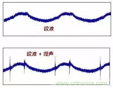 常有人描述問題時(shí)把紋波和噪聲混為一談。紋波是低頻的,噪聲是疊加在紋波的干擾信號(hào)。如圖: