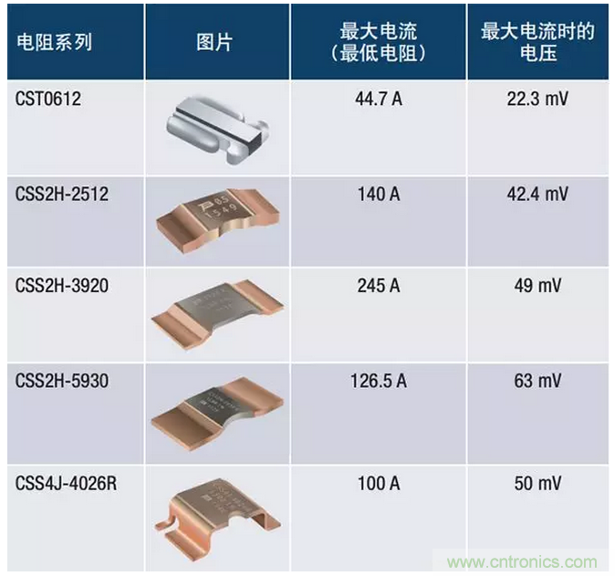 表2:最大電流和Bourns電流檢測(cè)電阻上的壓降
