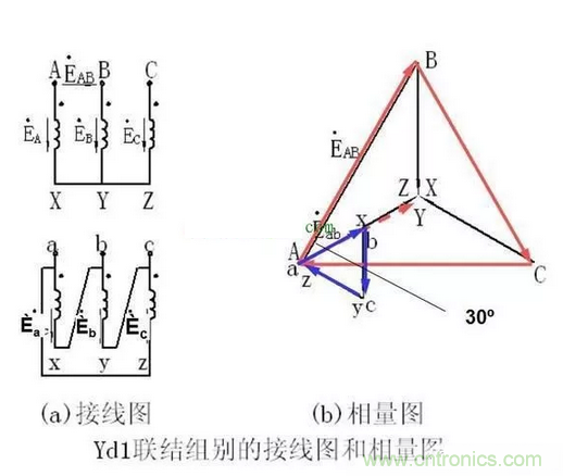 2、用相電壓矢量圖來識(shí)別Y/Δ 接法的聯(lián)接組別