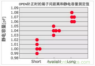 <OPEN補正時的重點>OPEN補正端子間距離和靜電容量測定結果