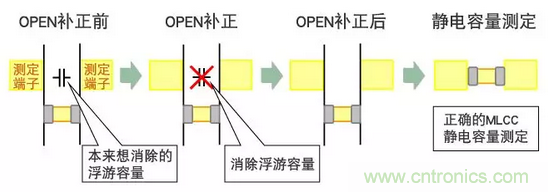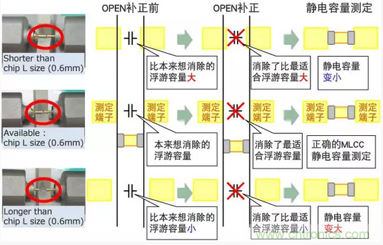 OPEN補正端子間距離和MLCC L寸法不一樣的狀態下進行補正、治具自身的浮游容量就不能得到正確的0補正。