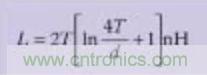 帶狀電感是另外一種需要考慮的寄生效應,它是由于印制線過長或缺乏接地平面引起的。(公式二)顯示出計算印制線電感(Inductance)的公式。可參考(圖六)。