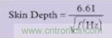 在高頻段,必須考慮一種稱為趨膚效應的現象。趨膚效應會引起電流流向導線的外表面,結果會使得導線的橫截面變窄,因此使直流(DC)電阻增大。雖然趨膚效應超出了本文討論的范圍,這里還是給出銅線中趨膚深度(Skin Depth)的一個很好的近似公式(以cm為單位):