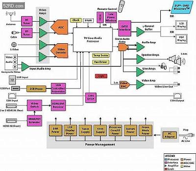 除此之外,電視信號的處理還包含了類比與數位轉換元件(AnalogDigitalConverter,ADC)、相鎖迴路(PhaseLockLoop,PLL)、數字視頻介面(DigitalVideoInterface,DVI)以及低電壓差動信號處理介面(LVDS)等分離元件,其中ADC與VideoDecoder則是因為同時包含了模擬與數字信號的混合設計晶片技術,在電路結構方面相對復雜,因此多以獨立形式存在,難以與其他元件整合。在此歸納出下列幾點: