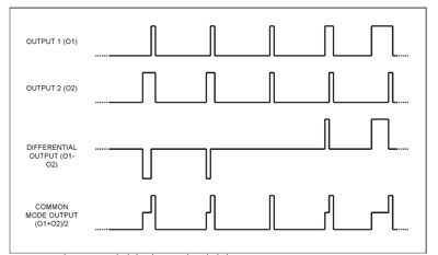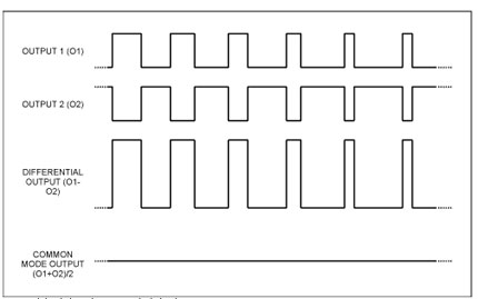 顯然,這一新技術雖具有一些優點,但放大器輸出將不再對稱。圖2所示的信號波形(以MAX9704立體聲D類放大器為例)具有較高的共模分量。