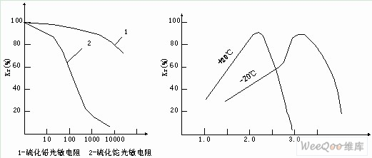 圖5 光敏電阻的頻率特性 圖6 硫化鉛的光譜溫度特性