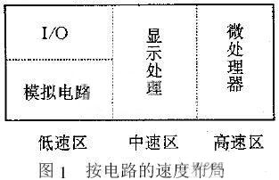 單元電路工作頻率越高,速度就越快,信號的頻譜也就越豐富;高頻分量比例越大,對外干擾也就越強。可根據單元電路的工作頻率分為高速電路(如微處理器),中速電路(如顯示處理),低速電路(如接口)和模擬電路(如模擬信號放大器)。多種速度電路在印制板上的布局一般如圖1所示。