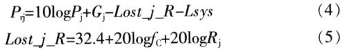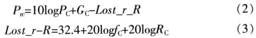 設發射系統的發射功率為Pc,單位為W;發射天線增益為Gc,單位為dB;發射距離為Rc,單位為km;信號傳輸損耗為Lost_r_R,單位為dB;信號頻率為fc,單位為MHz。發射信號到達接收系統的功率為: