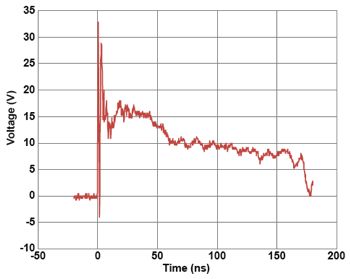 安森美半導體的ESD鉗位性能備受業(yè)界推崇,鉗位性能可從幾種方法觀察和量化。使用幾個標準工具即可測量獨立ESD保護器件或集成器件的ESD鉗位能力,包括ESD保護功能。第一個工具是ESD IEC61000-4-2 ESD脈沖響應截圖,顯示的是隨時間推移的鉗位電壓響應,可以看出ESD事件中下游器件的情形。