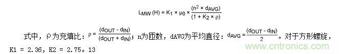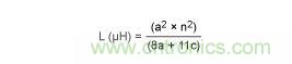 式中,a為線圈的平均半徑,單位為英寸;n為匝數(shù);c為線圈磁芯的寬度(rOUTER - rINNER),單位為英寸。當(dāng)線圈的c  > 0.2a時11,該計算方法的精度在5%之內(nèi)。