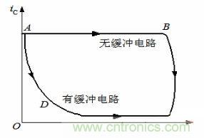 如圖所示增加吸收電路后開關管上的電流、電壓波形與沒有吸收回路時的波形比較。