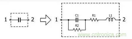 以常見的表貼式MLCC陶瓷電容為例,進行等效模型如下: