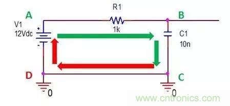 往往在設計階段A->B->C是都會關注的。如果EMC出現問題,除了要在原理圖上查找電路參數的問題,還需要特別關注C->D,即回流路徑。