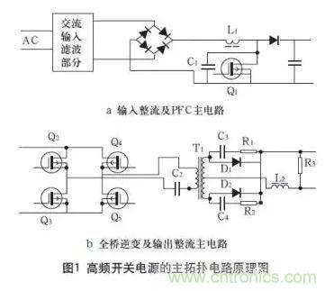 高頻開關(guān)電源的主拓?fù)潆娐吩恚鐖D1所示。