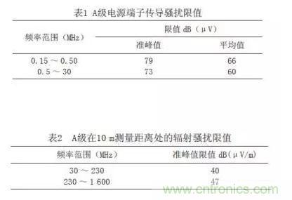 根據(jù)鐵路客運(yùn)專線標(biāo)準(zhǔn)規(guī)定,傳導(dǎo)騷擾限值和輻射騷擾限值如表1、2所示。