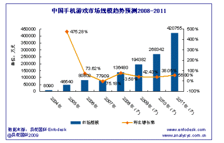 - 從2003年至2011年手機游戲市場將獲得高速成長