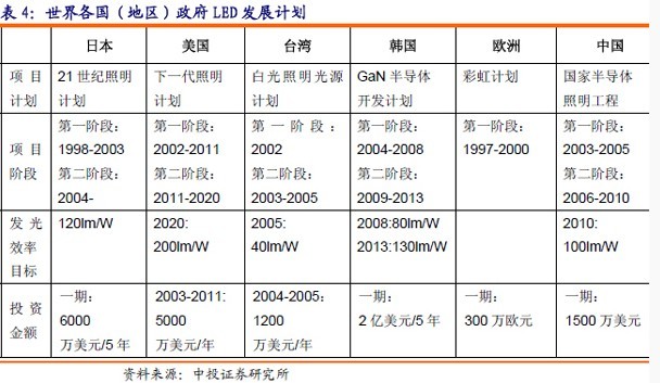 LED照明生產的效益顯而易見,世界各國都在政府的大力資助下加快推進LED照明取代傳統照明的步伐,日本、美國、歐盟、韓國、中國臺灣和中國政府都制定了相應的發展計劃。