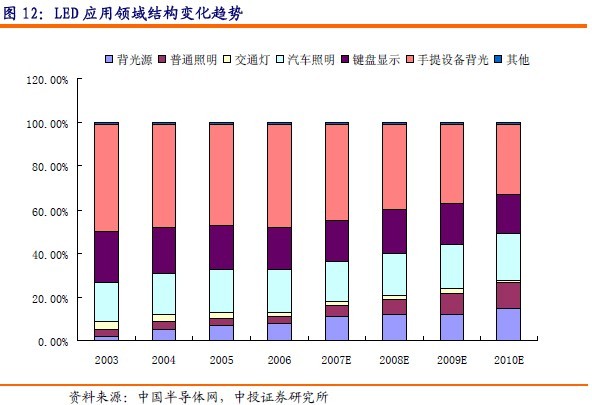 • 2008年LCD背光源仍將占有26%的市場份額,到2008年高亮度LED市場仍將增長一倍