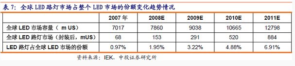未來3-5年,LED路燈占全球LED市場份額將從2007年的1%上升到2011年的7%左右。