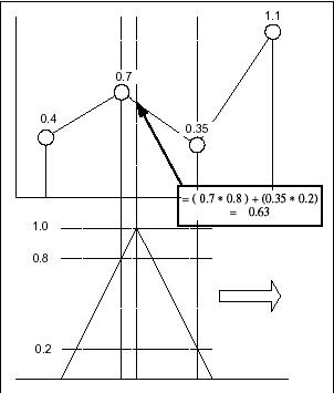 隨著窗口滑到右面,通過把窗口值之和乘以窗口和樣點相交時的實際樣點值,得到內(nèi)插點。內(nèi)插的樣點放在窗口頂點時間上。