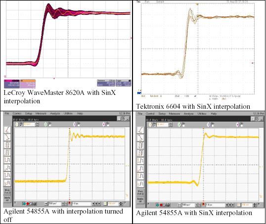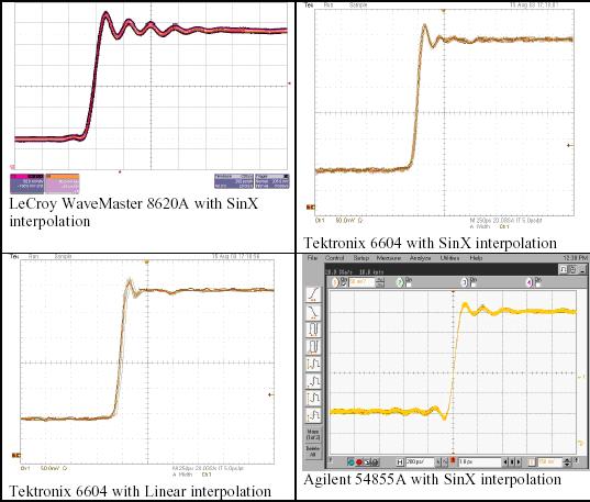 泰克6604,使用線性內(nèi)插                               安捷倫54855A,使用SinX內(nèi)插