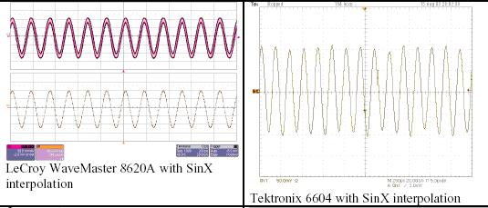 力科WaveMaster 8620A,使用SinX內(nèi)插         泰克6604,使用SinX內(nèi)插