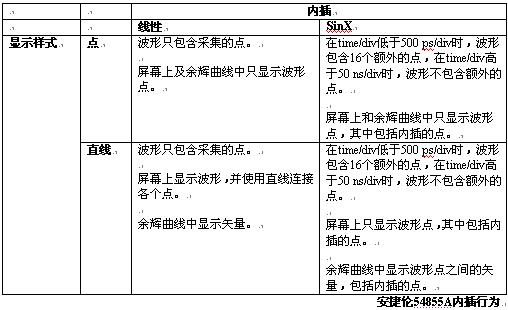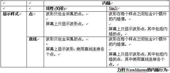 下表詳細(xì)介紹了在WaveMaster上怎樣應(yīng)用內(nèi)插及怎樣顯示波形的規(guī)則。