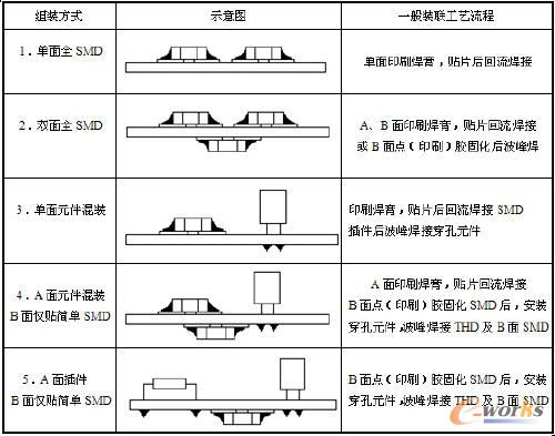 通常針對PCB不同的裝聯(lián)密度,推薦的組裝方式有以下幾種: