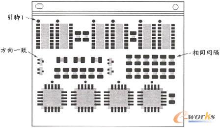 還有,相似的元件類型應(yīng)該盡可能接地在一起,所有元件的第一腳在同一個方向,如圖3所示。