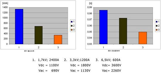 不同阻斷電壓下IGBT效率的對比.