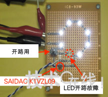 實際使用雙向晶閘管時的情景。即使1個LED發生開路故障,采用雙向晶閘管電力便可轉為旁路,因此串聯的其他LED仍會正常點亮