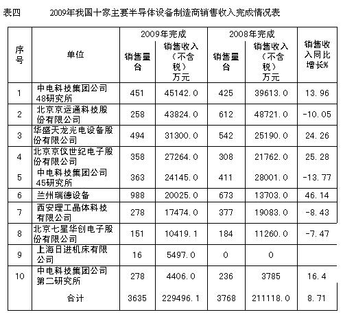 2009年我國十家主要半導體設備制造商完成的半導體設備總銷售收入(不含稅)達到22.95億元,同比增長了8.71%。半導體設備出口交貨值為4127.4萬元,同比下降了31.2%。