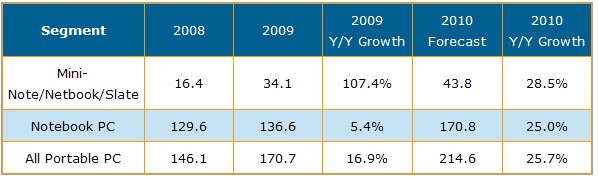 Source: The new DisplaySearch Q1’10 Quarterly Advanced Notebook PC Shipment and Forecast Report