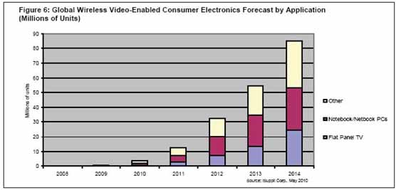 - 2014年,逾5300萬個此類設備將是支持無線視頻的數字電視和面向消費類上網本/筆記本