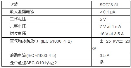 新的保護陣列在0V時具有16pF的低容值,在5V工作電壓下的泄漏電流小于0.1μA。器件使用廣為采用的SOT23-5L封裝,在生產過程中很容易進行處理,0.7mm的超薄厚度可節省電路板空間。