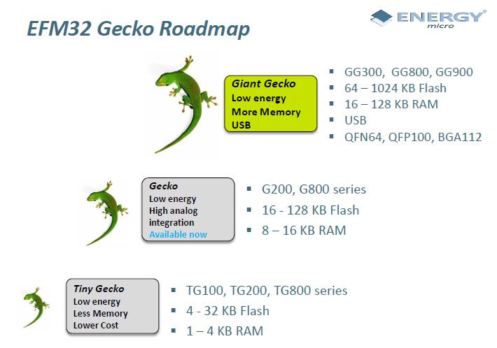 - 新的Giant Gecko系列提供更大的Flash閃存,部分產(chǎn)品提供USB外設(shè)