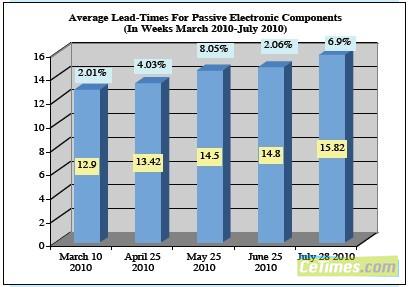 在第二季度,交貨時間被拉長,我們還密切關(guān)注了原材料的價格。7月份出現(xiàn)了一次無征兆的跳躍,交貨時間在過去30天里再一次延長了6.9%,其中鉭電容器的交貨時間增加最為明顯,而MLCC的交付時間則縮短了,因為韓國和日本差不多在同一時間開始供貨(圖1.1)