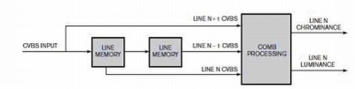 2D梳狀濾波器的工作原理是:如果圖像目標(biāo)行的上下存在類似幾行,色度和亮度就可以更徹底地分離。