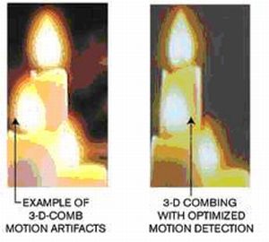 與之相反,配有3D梳狀濾波器的高性能視頻解碼器利用很多幀存儲(chǔ)器來更準(zhǔn)確地檢測(cè)所有幀之間的運(yùn)動(dòng)。使用大量的幀很有必要,有助于解碼器準(zhǔn)確判斷何時(shí)何地采用3D梳狀濾波器。