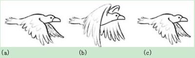 圖11:自適應(yīng)3D梳狀濾波器依賴解碼器來正確檢測(cè)圖像移動(dòng)。這是鳥舞動(dòng)翅膀的正常順序-向下(a),向上(b),再向下(c)。