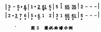 因此,可以所選曲譜的最短音符作為時值的度量單位。比如,圖3所示的《梁祝》曲譜中最短的音符為8分音,若其編碼存放1個存儲單元,則時值計數脈沖周期為一個8分音長時間,可選O.5s。曲譜中的四分音符碼需要存放2個單元,一拍延長音也需要2個單元。該段曲譜有8個音節,每個音節是一個全音(8個8分音),演奏總時值為8×8個8分音。所以,存儲曲譜編碼的存儲器需要64個存儲單元。