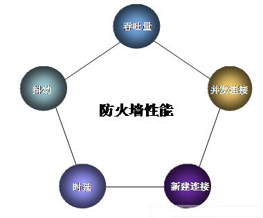衡量防火墻的性能指標主要包括吞吐量、報文轉發率、最大并發連接數、每秒新建連接數、轉發時延、抖動等。