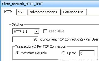 在進行吞吐量基線測試中,一般以HTTP作為應用層協議,為了得到最理想的測試效果,通過會選擇HTTP1.1,每個TCP連接處理盡量多的HTTP事務(transacTIon),并且將HTTP載荷設置較大。圖2是使用IxLoad設置的例子。
