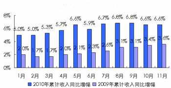 綜合取定2011年收入增長率在5.3%~6%之間。