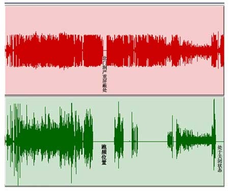 L牌UH2xx在由起點到終點的過程中,于247m處開始跑頻,L牌LMxx在199m處開始跑頻,繼續前進越發嚴重,直至接收不到信號。